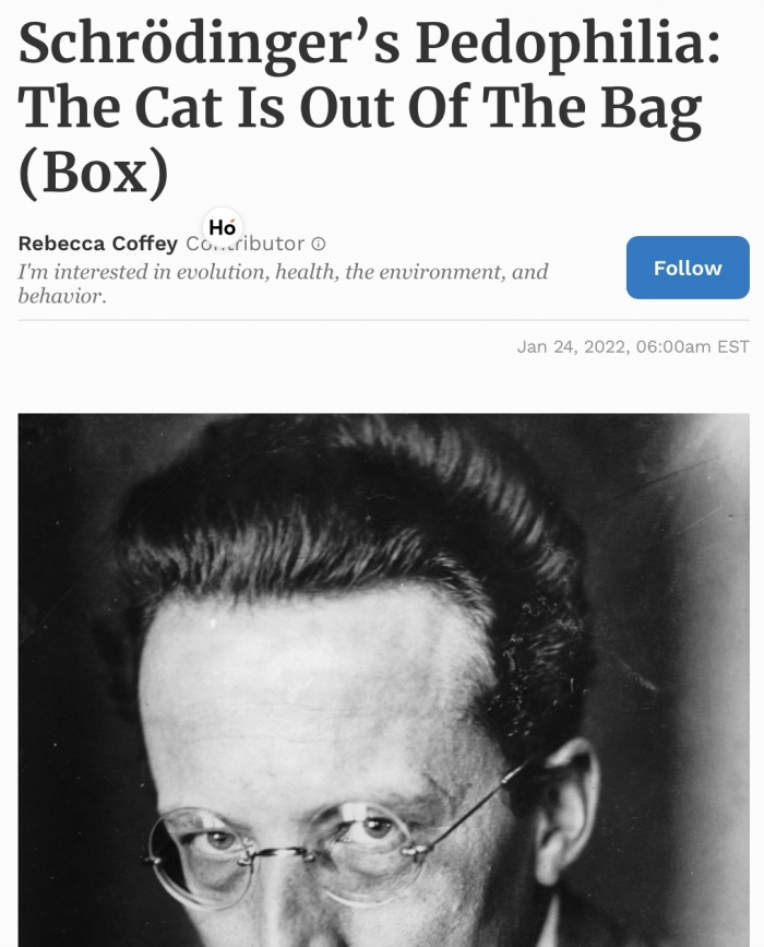 Erwin Schrödinger, widely cited as the father quantum physics was widely revealed to be a pedophile by The Irish Times after the newspaper published a report detailing his record as a sexual predator and serial abuser.